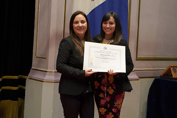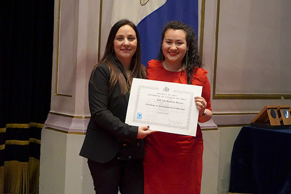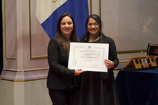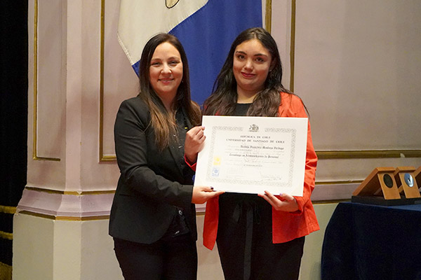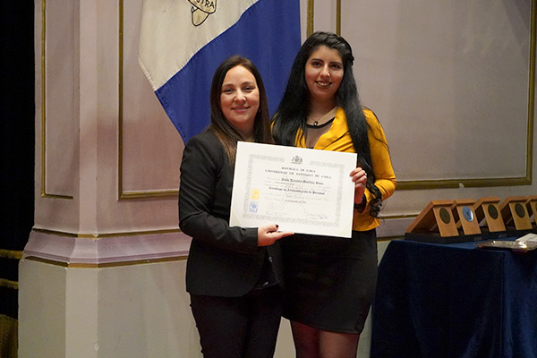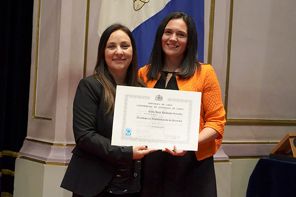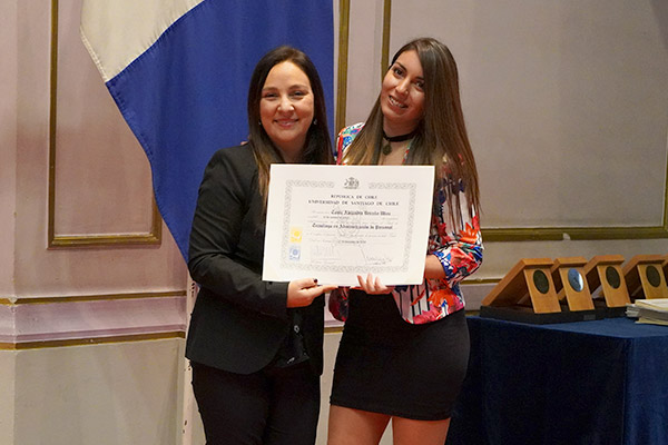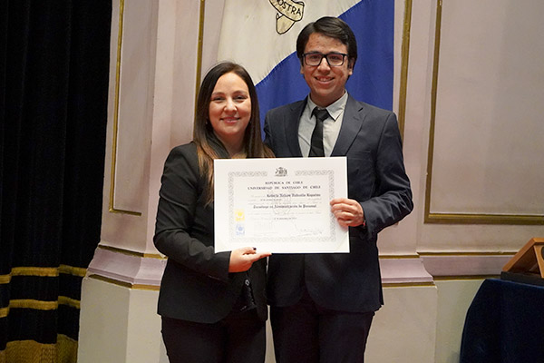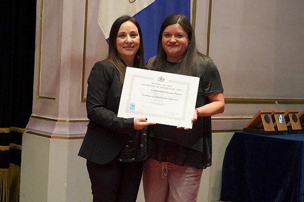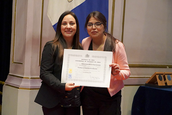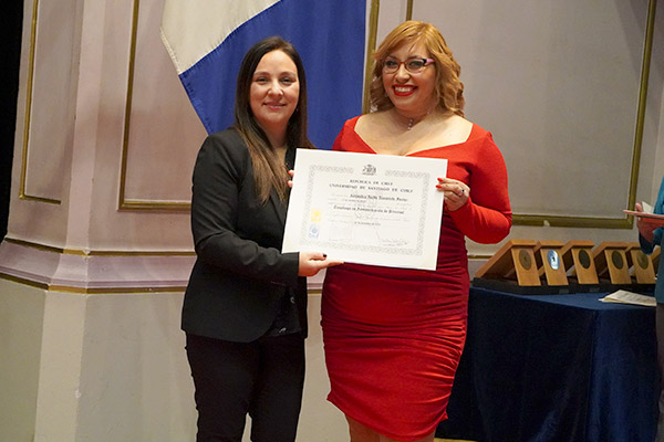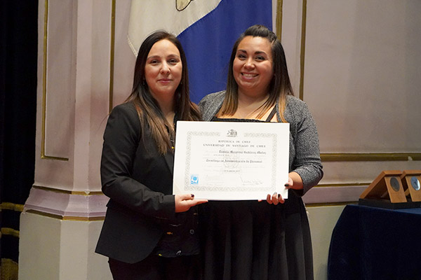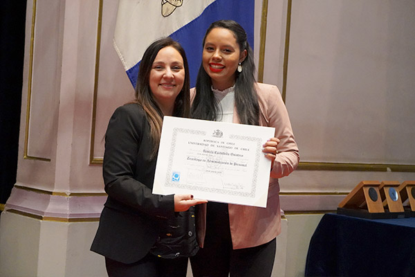 Por su parte la Jefe de Carrera Sra. María Regina Mardones Espinosa hizo lo propio con los títulos de la Carrera Tecnología en Administración de Personal, entregando así los títulos correspondientes a sus alumnos.