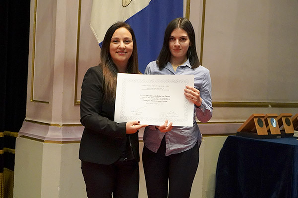 También se entregaron distinciones a estudiantes destacados académicamente. Como fue el caso de Alfaro Saavedra Natalia Alejandra, Bellido Yañez Alex Rony, Guzmán Cortés Jorge Amilcar, Bravo Jara Felipe Andrés, García Madrid Patricia Esther, Bustos Obreque José Antonio.