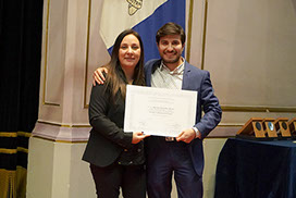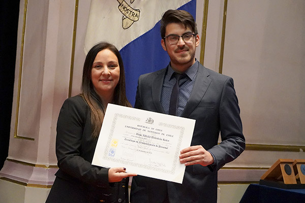 Durante las entregas de títulos de la Ceremonia, el Sr. Cristóbal Moreno Muñoz, Jefe de la Carrera Tecnólogo en Diseño Industrial, entregó los títulos correspondientes a su carrera, los nuevos profesionales. Posteriormente fue el turno de la entrega de grados de la Licenciatura en Organización y Gestión Tecnológica, a cargo del Dr. Julio González Candia quién entregó los diplomas correspondientes.