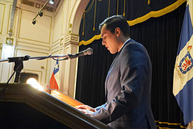 Luego fue el turno del jefe de Carrera Sr. Rodrigo Gallardo Canales, quien estuvo presente entregando los diplomas de Título en primera instancia para la Carrera de Tecnología de Control Industrial, para dar paso a la entrega de títulos de la Carrera Técnico Universitario en Control Industrial.